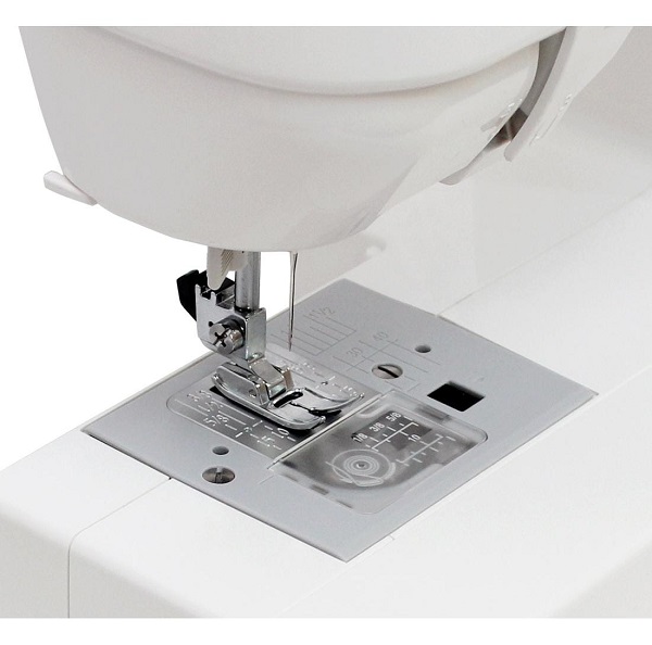 Świetną opcją, dostępną jednak w nieco droższych maszynach, jest pozycjonowanie igły. Co oznacza ten tajemniczy termin? Otóż, w zależności od tego jak ustawisz tę funkcję, jeśli zdejmiesz stopę z rozrusznika maszyny (nieważne w którym momencie), maszyna automatycznie zatrzyma igłę w pozycji 'w dół’, wbitą w materiał, lub w pozycji 'w górę’ – uniesioną ponad płytką ściegową.