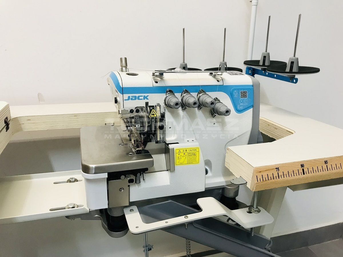 Nowy produkt w ofercie firmy JACK. Owerlok JACK E4S-4 2-igłowy, przeznaczony do szycia materiałów lekkich i średnich. Wyposażony w zintegrowany napęd energooszczędny servo. Możliwość regulacji pozycjonowania igły (góra/dół), prędkości maksymalnej owerloka oraz oświetlenia LED wbudowanego fabrycznie.