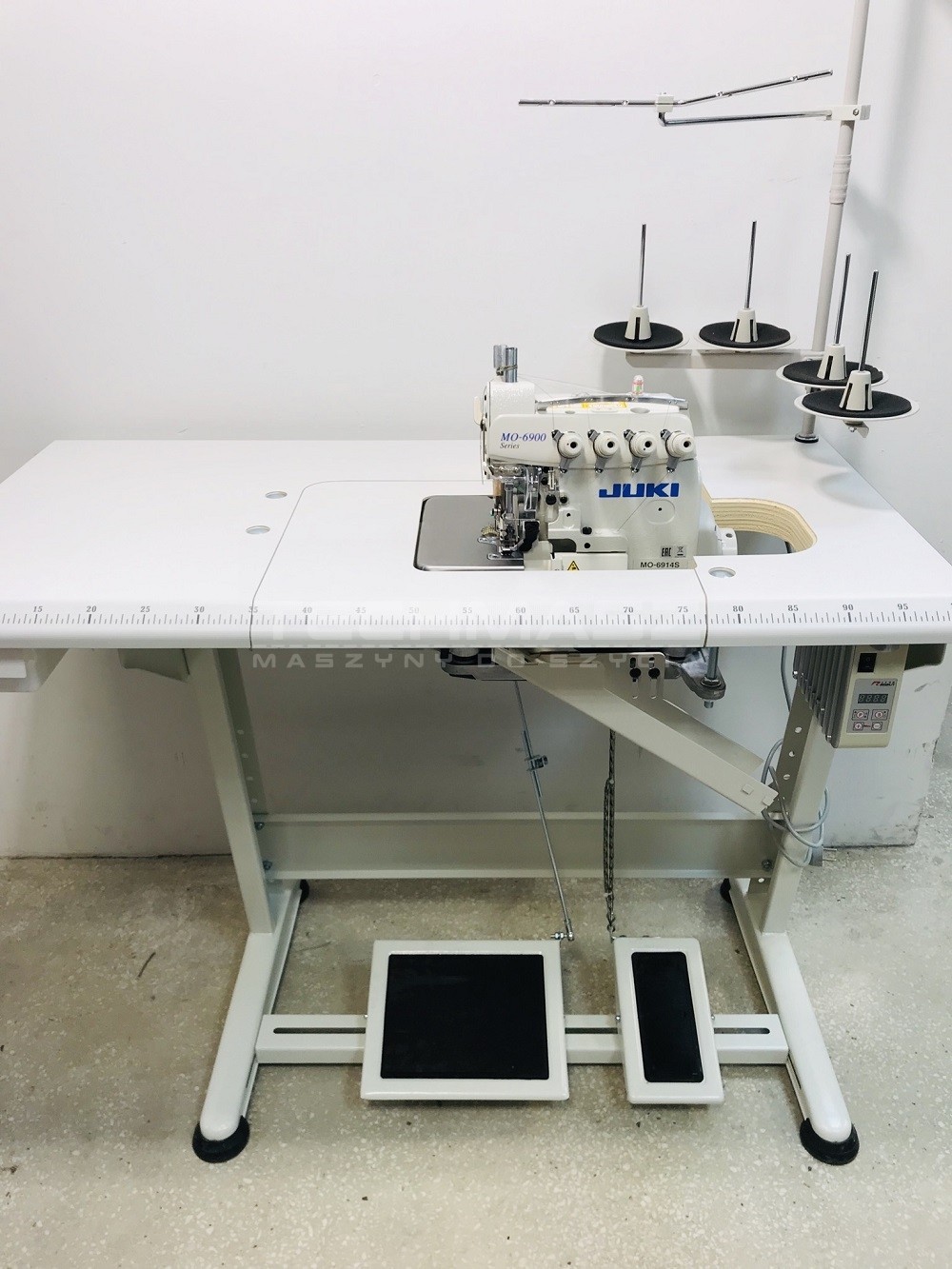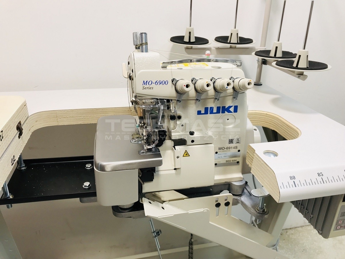 Owerlok 2-igłowy, 4-nitkowy przeznaczony do szycia materiałów średnich i ciężkich. Owerlok napędzany nowoczesnym silnikiem servo energooszczędnym. Dostępna także podklasa owerloka MO-6914S-BE6-44H/G39/Q141 wyposażona w specjalną stopkę oraz prowadnik umożliwiający doszywanie taśmy lub gumy w wyrobach z materiałów średnich i ciężkich.