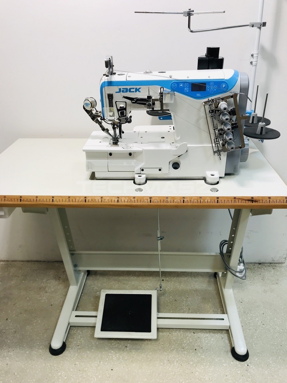 - JACK W4-UT-01GBx356 – renderka 3-igłowa, 5-nitkowa, szycie materiałów lekkich, średnich i ciężkich, rozstaw igieł 5,6 mm oraz prędkość szycia do 5500 ściegów/min,