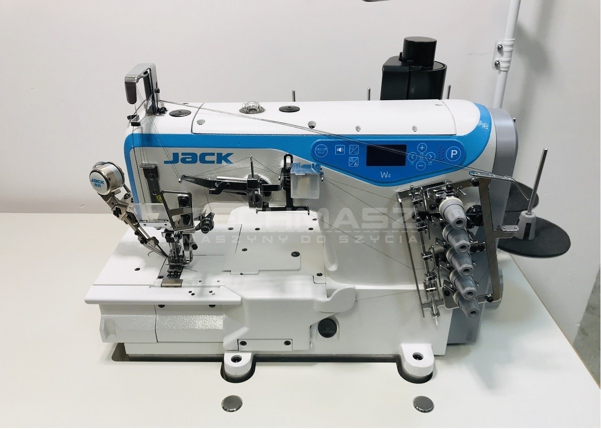 - JACK W4-UT-01GBx364 – renderka 3-igłowa, 5-nitkowa, szycie materiałów lekkich, średnich i ciężkich, rozstaw igieł 6,4 mm oraz prędkość szycia do 5500 ściegów/min.